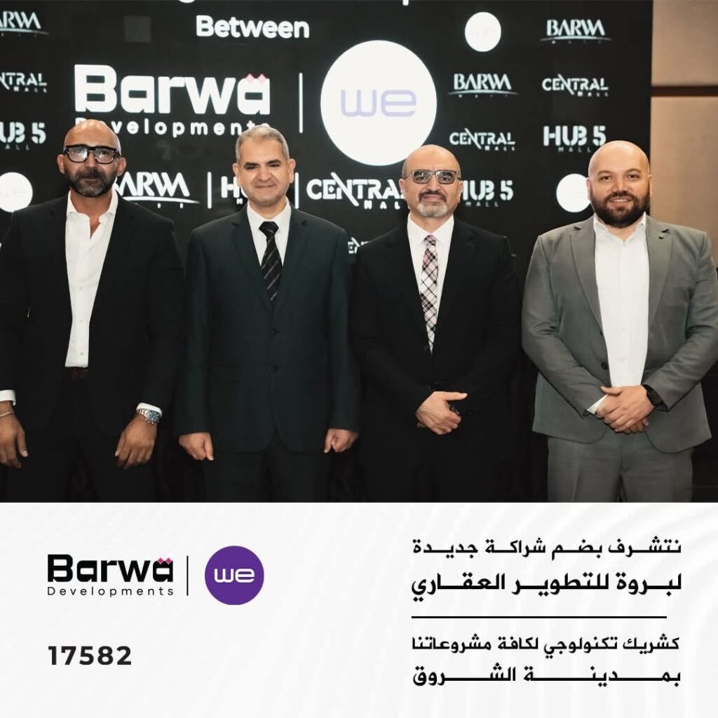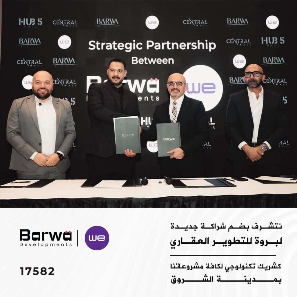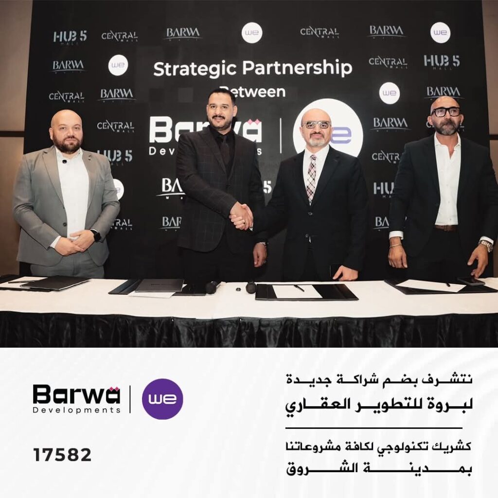 أعلنت شركة Barwa Developments عن توقيع شراكة استراتيجية مع الشركة المصرية للاتصالات “WE”، لتكون الشريك التكنولوجي في مشروعات شركة بروة للتطوير العقارى في مدينة الشروق.